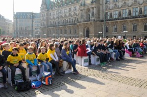 2000 Schülerinnen und Schüler aus Schulen in freier Trägerschaft erhielten eine Unterrichtsstunde auf dem Hamburger Rathausmarkt