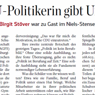 Nachricht im Hamburg Journal ab Minute 19:38 Beitrag „Lehrer als Politiker“ Karin Prien an der Sophie-Barat-Schule