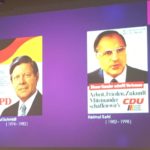 Zuvor wurden in unserer Aula Unterrichtsergebnisse aus dem Geschichts-Profil präsentiert: Mit dem Ziel der historischen Einordnung der aktuellen Wahlen wurde auf bisherige Bundeskanzler und die Geschichte der Parteien zurückgeblickt; zwei Schüler erläuterten das deutsche Wahlsystem und stellten kurz einige Vor- und Nachteile von Mehrheits- und Verhältniswahl, direkter und repräsentativer Demokratie, Direktwahl des Präsidenten (wie in den USA oder Frankreich) und Parlamentswahl mit anschließender Koalitionsbildung (wie in Deutschland) gegenüber; und im Anschluss wurden einige Auszüge aus der Podiumsdiskussion gezeigt, an der in der vergangenen Woche Kandidaten aller sechs chancenreichen Parteien in unserer Aula teilgenommen hatten.