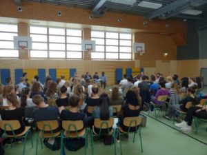 2000 Schülerinnen und Schüler aus Schulen in freier Trägerschaft erhielten eine Unterrichtsstunde auf dem Hamburger Rathausmarkt
